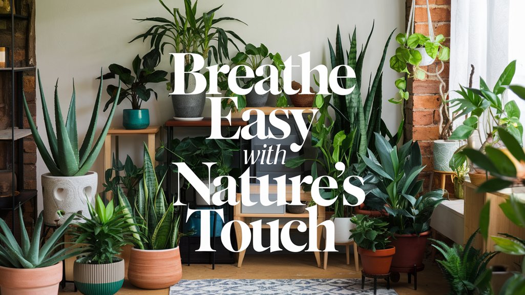 By strategically placing air-purifying plants throughout your home, you’ll transform each space into a more vibrant and healthier environment. Choose spider plants or peace lilies for the living room to enhance air quality. Opt for snake plants in the bedroom for their oxygen-boosting properties. Use ferns in the bathroom to thrive in humidity, and add succulents to your workspace for low-maintenance greenery. For playrooms, select non-toxic options like Boston ferns. With proper care, these plants will flourish and purify your air.
