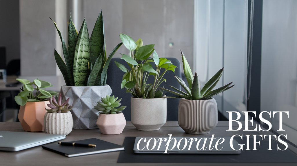 Incorporating live plants into your corporate gifting strategy is a forward-thinking approach that underscores a commitment to sustainability and enhances your brand image. Gift plants, especially air-purifying varieties, serve as eco-friendly corporate gifts that not only improve air quality but also reflect your dedication to a greener future. By opting for live plants, you’re promoting a healthy work environment, which can reduce sick days and boost productivity. Personalization options, such as branded pots or message cards, can further strengthen business relationships. Here’s a quick look at the benefits: