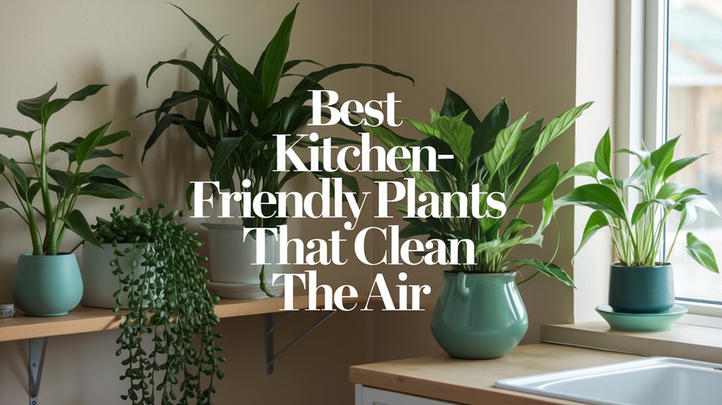 Incorporating kitchen-friendly air-purifying plants like aloe vera, English ivy, spider plants, snake plants, and cast iron plants can greatly improve your kitchen’s air quality. These plants don’t just filter out toxins; they’re also easy to maintain and enhance your kitchen’s atmosphere. By carefully selecting and caring for these resilient plants, you create a healthier, more inviting cooking environment. Remember, each plant has unique light and water needs, so tailor your care routine for ideal growth and air purification.