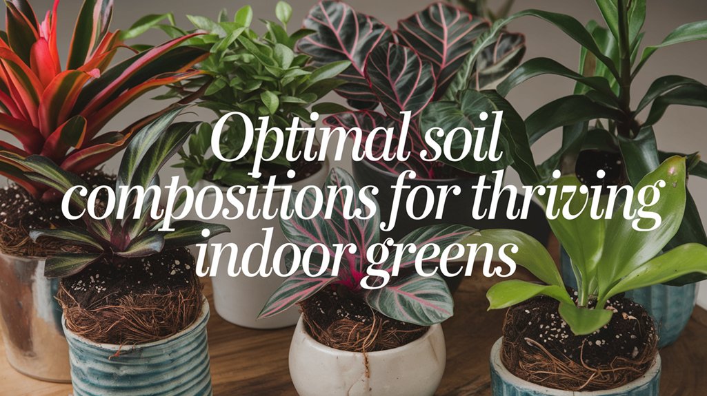 For ideal air-purifying indoor plants, choose soil mixes with peat moss or coconut coir for moisture retention, perlite for drainage, and ground pine bark for acidity. For specific plants, use well-draining mixes for Snake Plants, moisture-retaining for Pothos, and specialized orchid blends with bark. Avoid universal soil types and guarantee organic certifications. Proper soil choice impacts plant health, air quality, and growth. There’s more to uncover that can enhance your indoor garden’s performance.