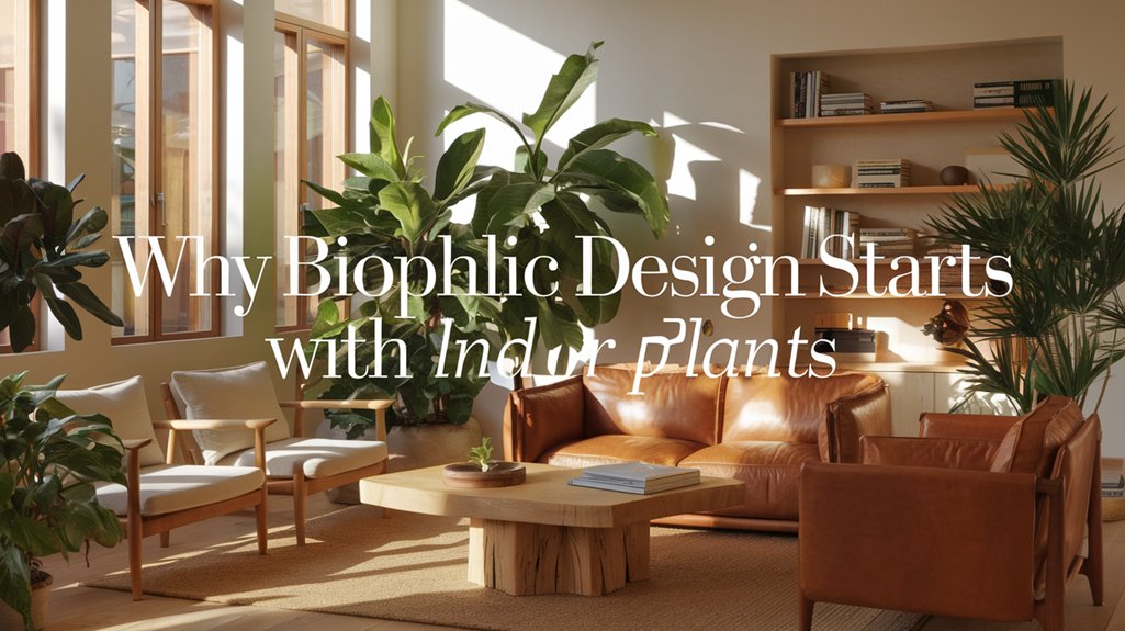 Biophilic design starts with indoor plants because they bridge the gap between modern interiors and the serene allure of nature. By incorporating greenery, you elevate both the aesthetics and emotional harmony of any space, creating a serene and visually pleasing environment. Indoor plants improve air quality and wellbeing, fostering a connection to the natural world. Embrace this tranquil transformation in your space and discover more about creating restorative environments that nurture the soul.