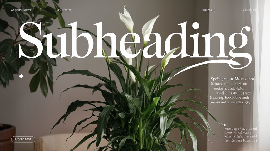 For ideal Peace Lily growth, selecting the appropriate soil and planting method is vital. Use a well-draining potting mix enriched with organic matter to maintain peak moisture levels. Confirm the pot includes drainage holes and has a diameter of 6-8 inches for ideal conditions. Position the crown of your peace lily level with the soil surface. The soil’s pH should range from 6.0 to 7.0. Watering is vital when the top inch feels dry.