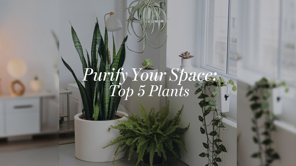 For your studio apartment, consider these top air-cleansing plants: the spider plant, snake plant, ZZ plant, peace lily, and golden pothos. Spider plants and snake plants effectively purify air and thrive in minimal care. The ZZ plant excels in low light and adapts well to various conditions. Peace lilies, though needing regular watering, remove toxins efficiently. Finally, golden pothos grows rapidly, improving aesthetics. Explore further to enhance your indoor environment’s air quality and decor.